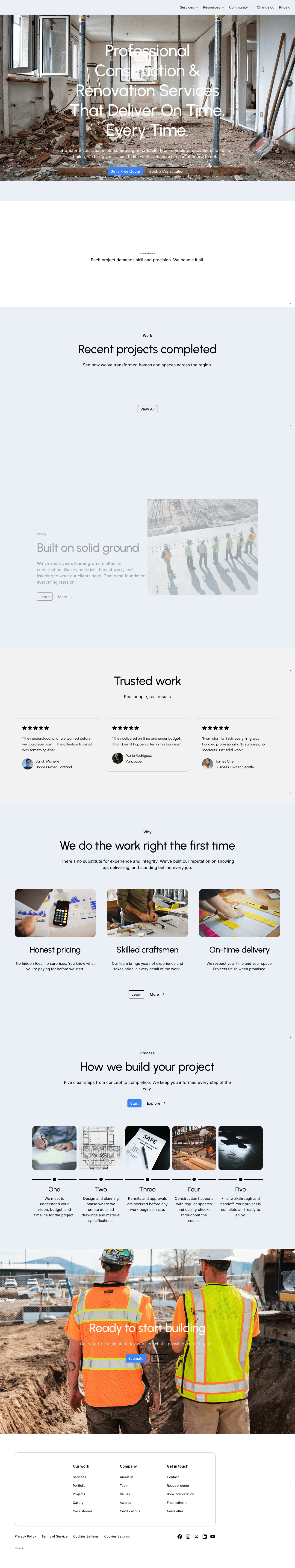 Construction is a trust-driven industry. Without clear project examples, visuals, and straightforward messaging, visitors hesitate to reach out — even if your work is excellent.